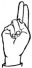 На ћирилици написано ЈЕЛЕНА ДАНГУБИЋ састоји се из 14 слова [?]. Исписано ћириличном једноручном азбуком за глувонеме: